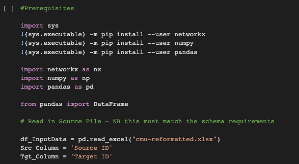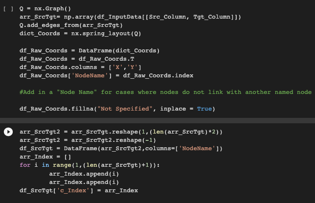 Once we determined the data model, I transformed the data from its tabular form into a format that better depicted the network relationships. This required the use of a specific Python script derived from an example published by Tiny Viz Talks that utilized NetworkX to reformat data for network graphs in Tableau. Their work was based on “Exploring Network Structure, Dynamics, and Function Using NetworkX” from Proceedings of the 7th Python in Science Conference (SciPy2008) (Aric A. Hagberg, Daniel A. Schult and Pieter J. Swart).