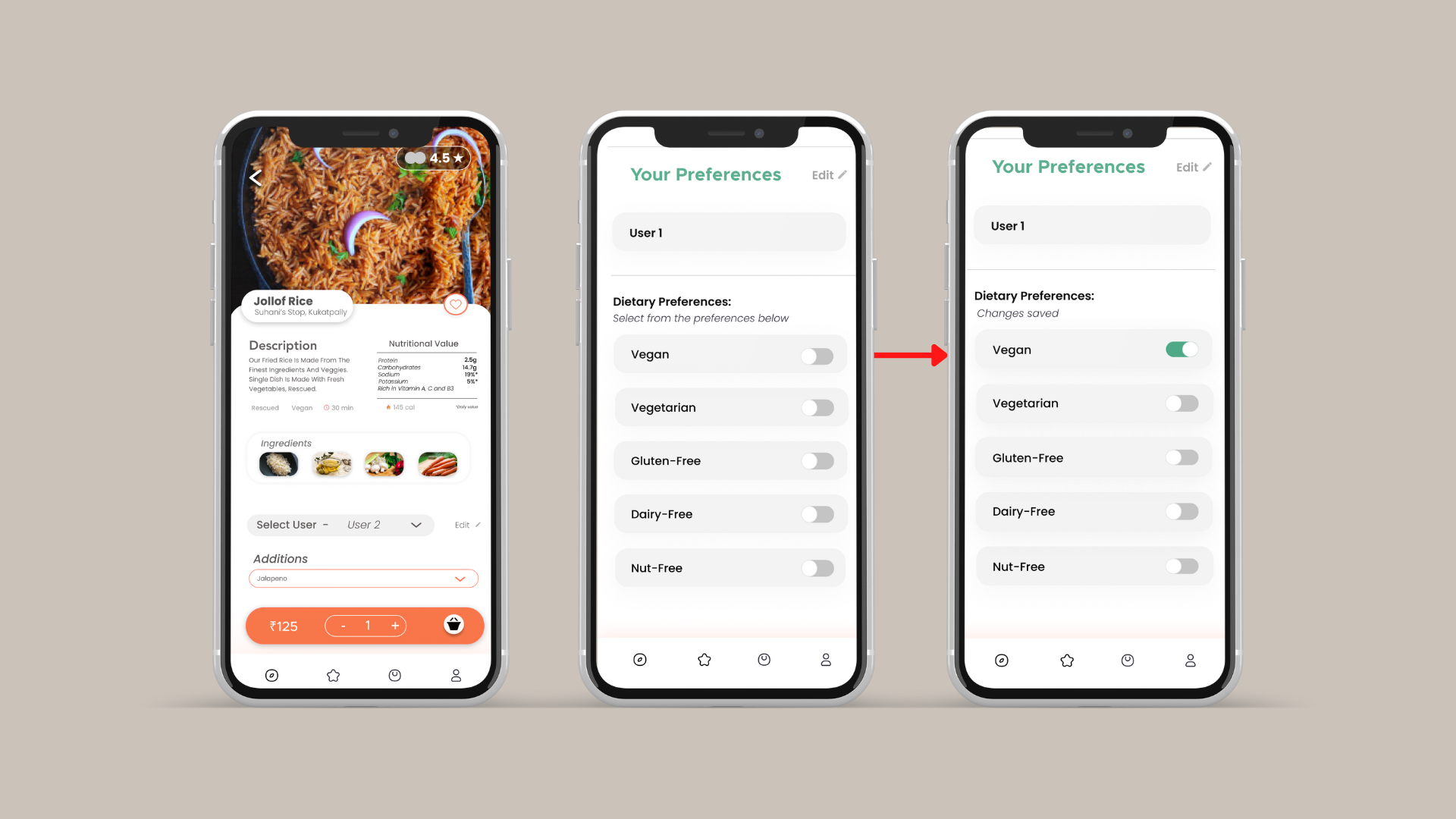 The task flow for setting dietary preferences has been included here. Full access to the prototype can be found here, but please keep in mind that not all of its functions have been fully built out. 😅